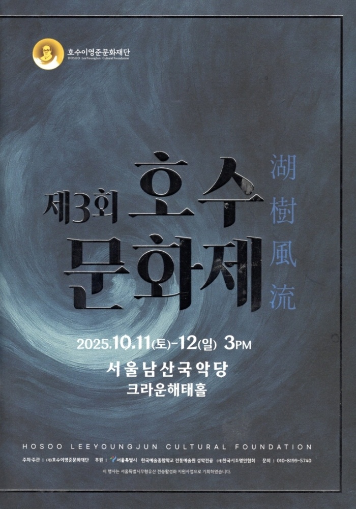 재단법인 호수이영준문화재단(이사장 이시은)이 주최하는 제3회 호수문화제가 오는 11일과 12일 이틀간 서울남산국악당 크라운해태홀에서 막을 올린다.