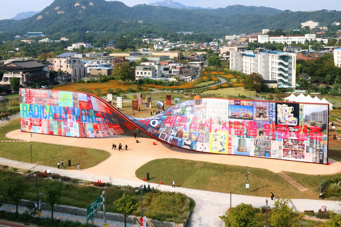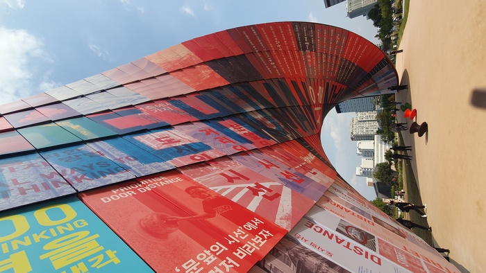 9일 서울 종로구 열린송현녹지광장. 이곳을 찾은 방문객들은 광장을 가로지르는 거대한 구조물 앞에서 발걸음을 멈췄다. 그곳에는 4160㎡(높이 16mㆍ폭 90m) 규모로, 가로 750ㆍ세로 2400㎜, 두께 1T(㎜)의 철제 패널 1428개를 붙여 만든 ‘휴머나이즈 월(Humanise Wall)’이 있다. 각 패널에는 국내ㆍ외 예술가들이 디자인한 ‘서울’의 모습이 담겨 있다.