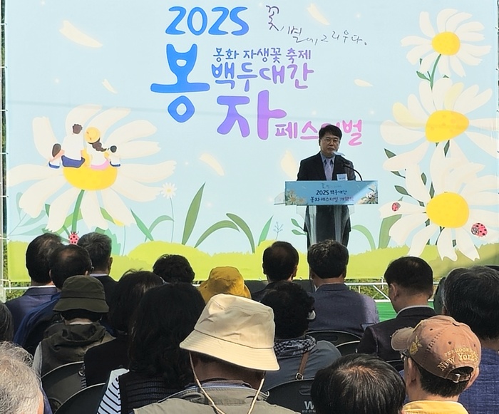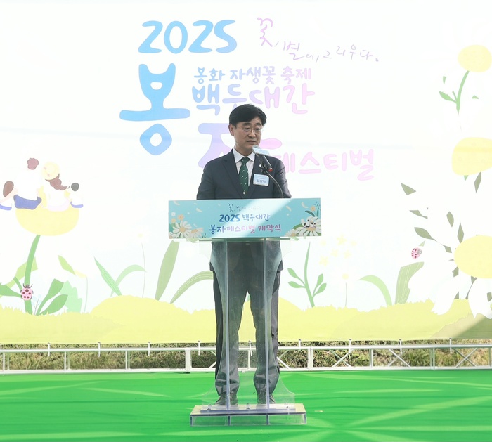 10월 2일 국립백두대간수목원, 봉자페스티벌 축제에서 이규명 원장이 인사말을 하고 있는 모습 입니다. / 사진 : 류효환 기자 |