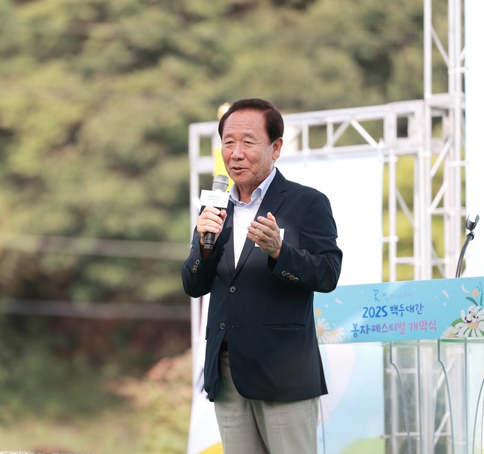 10월 2일 국립백두대간수목원, 봉자페스티벌 축제에서 한수정 심상택 이사장이 인사말을 하고 있는 모습 입니다. / 사진 : 류효환 기자 |