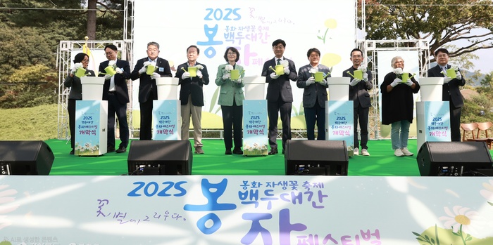 10월 2일 국립백두대간수목원, 봉자페스티벌에 참석한 기관 단체장들이 물조루들고 퍼포먼스를 펼치는 장면 입니다. / 사진 : 류효환 기자 |