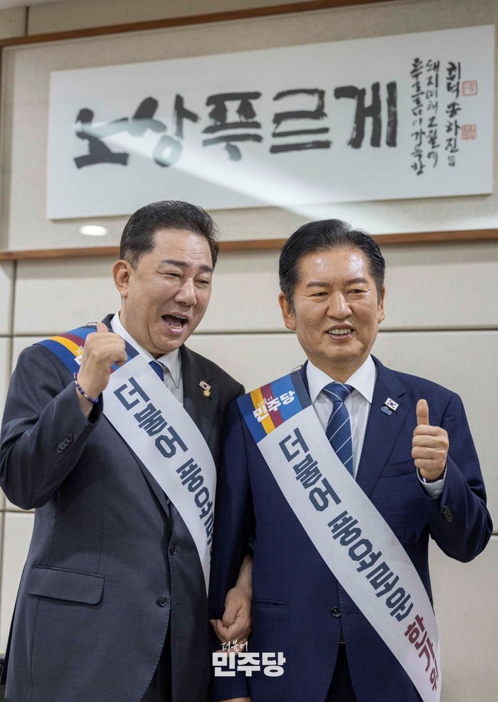 더불어민주당 정청래 대표와 김병기 원내대표가 지난 2일 서울 용산역에서 귀성하는 국민들에게 인사를 하고 있다./사진:더불어민주당 |