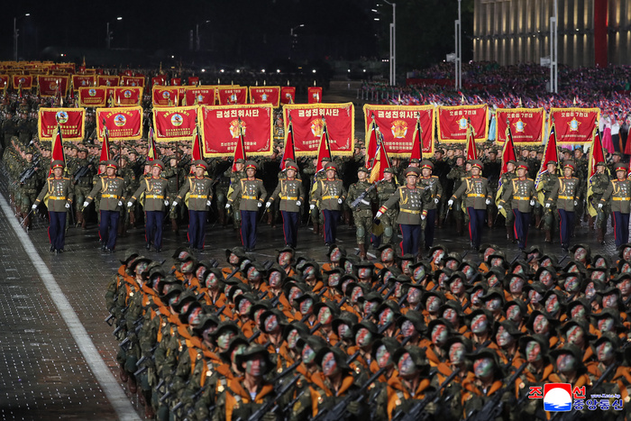 외신 등에 공개된 열병식 영상에는 인공기와 러시아 국기를 함께 든 부대가 행진하는 모습이 나온다. 러시아 매체 RT는 “이들 병사들은 러시아 군대와 함께 쿠르스크에서 싸웠다”고 언급했는데 쿠르스크 파병 북한군 부대가 열병식에도 등장한 것으로 관측된다.