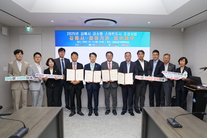 이번 협약은 김해시가 지난 6월 국토교통부 ‘2025년 강소형 스마트도시 조성사업’ 선정에 따라 2027년까지 3년간 총 165억 원(국비 80억, 도비 16억, 시비 64억, 민간 5억)을 투입해 추진하는 사업의 성공적 수행과 상호협력 체계 마련을 위해 마련됐다.
