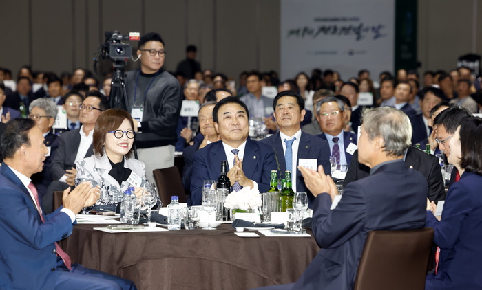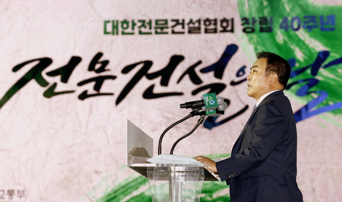 15일 인천 인스파이어리조트에서 열린 '제1회 전문건설의 날' 기념식에서 윤학수 대한전문건설협회장이 개회사를 하고 있다. 이 자리에는 회원사와 정부, 국회, 유관단체 관계자 등 1000여명이 참석했다.