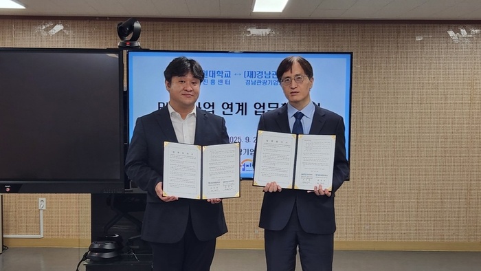 국립창원대학교는 경남관광기업지원센터와 업무협약(MOU)을 체결하고, 외국인 유학생의 진로 지원과 지역 관광 활성화를 위한 상호 협력에 나서기로 했다고 15일 밝혔다.