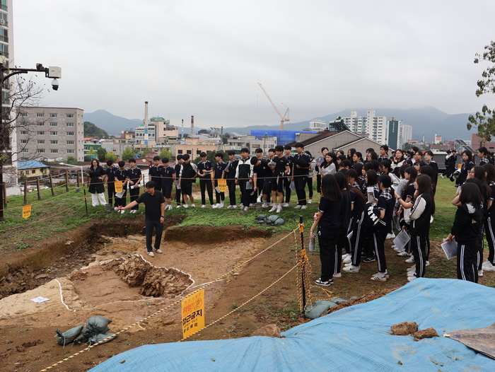 ‘함안 말이산고분군 말산리 437번지 일원 발굴조사’에 명덕고등학교 학생 견학을 하고 있다. / 사진 : 함안군 제공 |