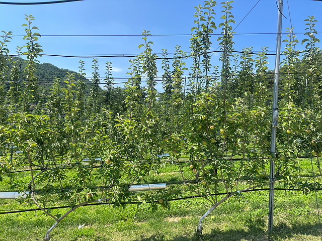 특히 수관 내부까지 광 투과율을 높여 과실의 착색과 당도를 향상시키고 통풍 개선과 약제살포 효율 증가로 병해충 관리가 용이하다.
