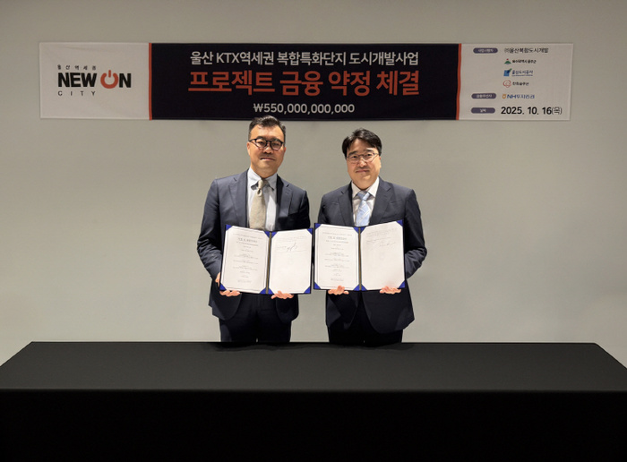 16일 업계에 따르면 뉴온시티 개발사업의 시행법인인 ㈜울산복합도시개발(울산광역시 울주군, 울산도시공사, 한화솔루션 공동출자)은 PF 대출 약정을 통해 총 5,500억원 규모의 자금을 확보했다. 이번 프로젝트의 금융주선은 NH투자증권이 맡았으며, NH투자증권을 비롯해 메리츠화재, 메리츠증권, BNK투자증권, KB캐피탈이 공동으로 대주단에 참여했다.