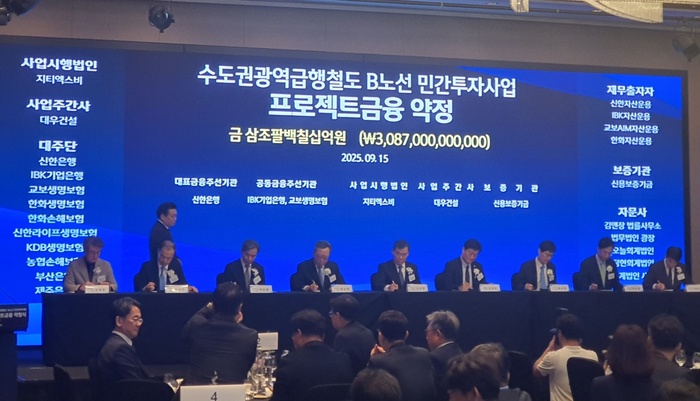 | 수도권광역급행철도(GTX)-B 노선 PF(프로젝트파이낸싱) 약정식 모습./사진:대한경제 DB |