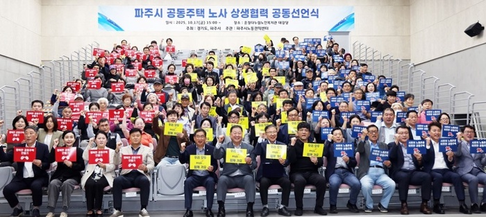 파주시는 지난 17일 운정다누림노인복지관 대강당에서 공동주택 노동자들의 근무 환경 개선을 위한 ‘파주시 공동주택 노사 상생 협력 공동선언식’을 개최했다.