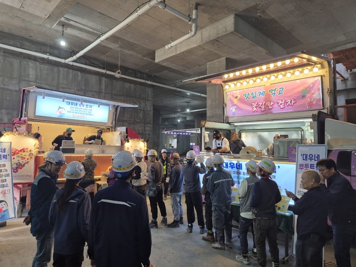 ‘대우네 뿌듯트럭’은 현장 직원들이 직접 작성한 사연, 영상, 롤링페이퍼를 통해 일상과 감동적인 순간을 공유하고, 선정된 현장에는 계절별 간식차(팥빙수, 수박, 분식 등)가 방문해 즐거운 휴식 시간을 선사하는 프로그램으로 지난해 10월부터 시작됐다.