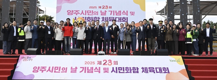 [대한경제=최종복 기자]경기 양주시가 지난 19일 백석생활체육공원에서 ‘제23회 양주시민의 날 기념식’ 및 ‘시민화합 체육대회’를 열고 시민과 함께하는 뜻깊은 시간을 가졌다.