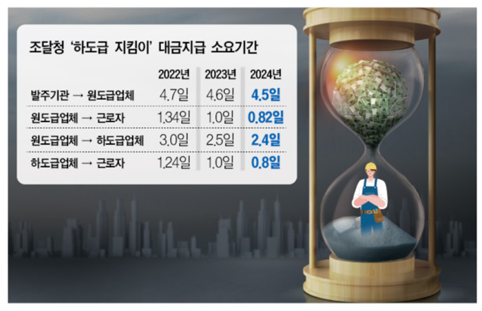[대한경제=최지희 기자] 건설현장 일용직 근로자의 임금 체불을 예방하기 위해 도입된 조달청의 ‘하도급 지킴이’ 제도가 오히려 일용직 근로자들의 임금 지급을 늦추고 있다는 지적이 나왔다.