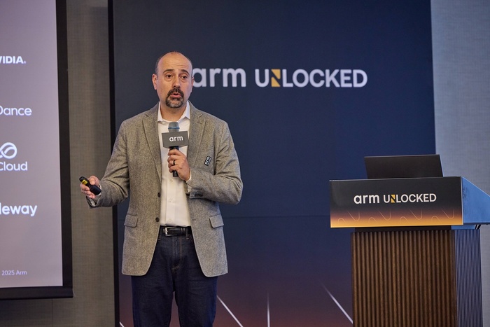 | 21일 서울 강남구 그랜드인터컨티넨탈 서울파르나스에서 열린 ‘Arm 언락 서울 2025’ 기자간담회에서 에디 라미레즈 Arm 인프라 사업부 부사장이 발표를 하고 있다. /사진: Arm코리아 제공 |