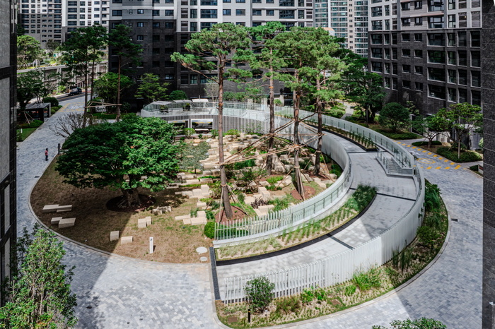 특히 재건축 이전부터 자리해온 느티나무 보호수를 존치해 설계 단계부터 단지 배치와 동선도 고려했다. 이로 인해 발생하는 수목 주변 단차를 자연스럽게 휴게 공간으로 활용해 공간 효율성을 높인 것이다. 또 선큰이라는 음지의 생태 환경을 고려한 녹지와 침수 방지 배수 등 설계로 공간을 마련했다.