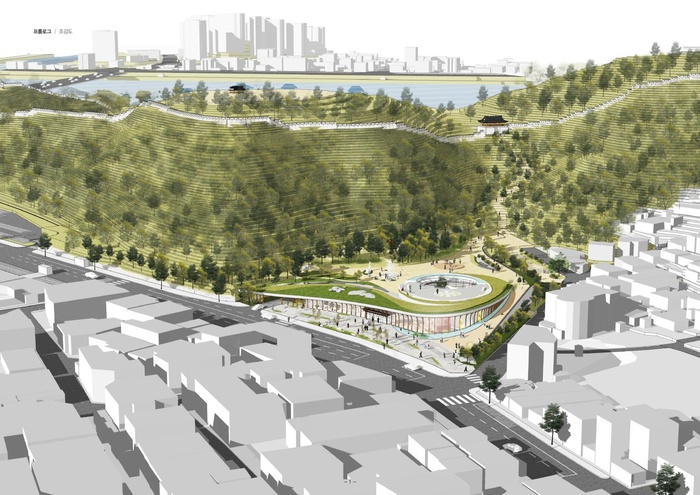 진입마당에서 옥상정원으로 이어지는 순환형 동선과 전시·체험공간의 유기적 연계도 돋보인다. 관리동선은 별도로 구성해 운영 효율성도 높였다. 건물은 경사지 남측에 배치해 성토와 절토를 최소화했으며, 부드러운 매스로 공산성 능선과 자연스럽게 조화를 이룬다.
