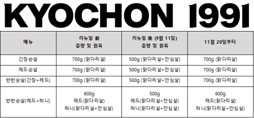 [대한경제=문수아 기자] 교촌치킨을 운영하는 교촌에프앤비가 지난 9월 리뉴얼 출시한 순살 메뉴 중 조리 전 중량과 원육 구성을 변경했던 4개 메뉴를 종전대로 되돌린다고 23일 밝혔다.