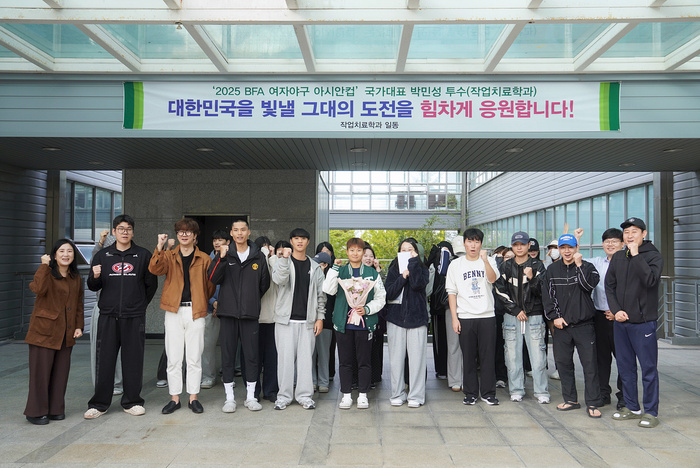 이번 대회는 오는 10월 26일부터 11월 2일까지 중국 항저우에서 개최되며, 작업치료학과 학생들과 교수진은 지난 22일 박민성 선수의 선전을 기원하는 환송회를 가졌다.