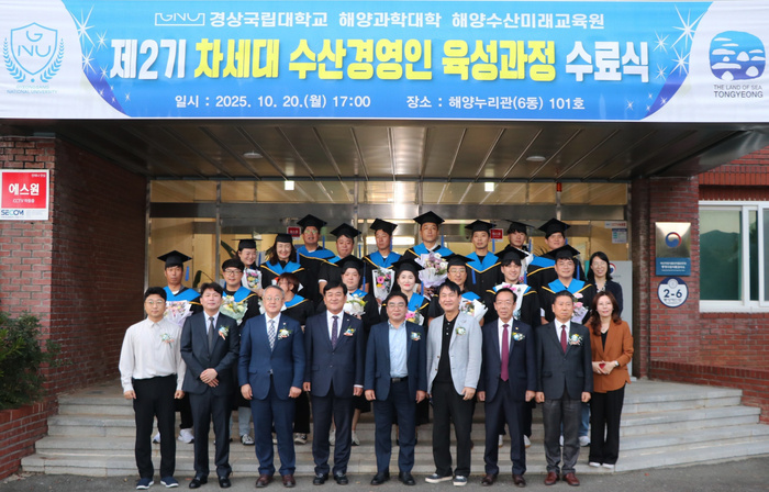 경상국립대학교(GNU·총장 권진회) 해양과학대학(학장 이정석) 해양수산미래교육원은 지난 20일 ‘제2기 통영시 차세대수산경영인 육성과정’ 수료식을 개최했다고 23일 전했다.