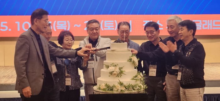 | 이해경 한국엔지니어링협회 회장(왼쪽 4번째)을 비롯한 주요 임원진들이 20주년을 맞은 ‘엔지니어링 워크숍’을 기념해 케이크를 자르고 있다. /사진= 백경민 기자 |