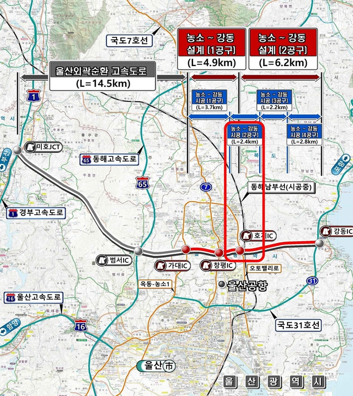| ‘농소-강동 도로개설공사’ 노선도 |