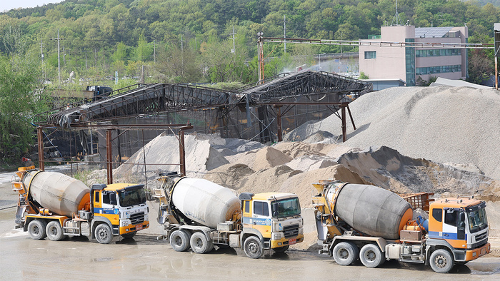 | 레미콘 믹서트럭이 줄을 선 모습. /사진:연합 |