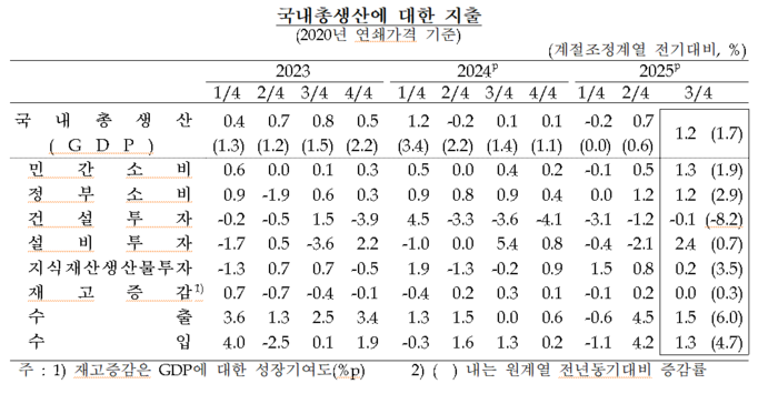 이 국장은 “현재까지의 흐름을 보면 조사국에서 8월에 전망한 대로 3분기 1.1% 수준의 성장세가 나왔고, 4분기도 그 흐름에 따라갈 가능성이 있다”며 “특히 수출·민간소비·건설투자 관련 지표를 중심으로 지켜볼 필요가 있다”고 설명했다.