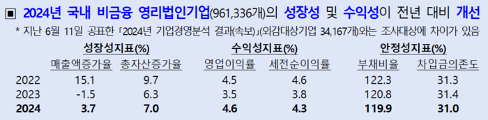 수익성도 개선됐다. 전체 기업의 매출액 대비 영업이익률은 4.6%로 전년(3.5%)보다 1.1%포인트(p) 상승했고, 세전 순이익률도 4.3%로 0.5%p 올랐다.