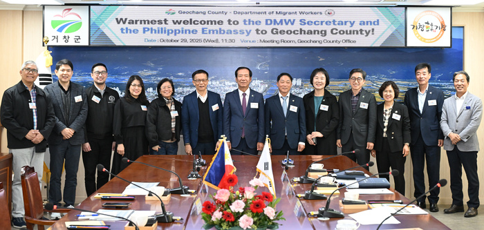 거창군은 29일 필리핀 이주노동부(DMW) 한스 레오 칵닥(Hans Leo J. Cacdac) 장관이 군을 공식 방문했다고 밝혔다.