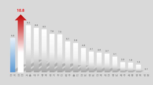 통계청이 발표한 ‘2025년 8월 인구동향’에 따르면, 인천시는 1월부터 8월까지 출생아 수가 전년 같은 기간보다 10.8% 늘어나 전국 17개 시·도 가운데 가장 높은 증가율을 보였다. 이는 전국 평균을 크게 웃도는 수치로, 수도권 내에서도 서울(9.3%), 경기(7.6%)를 앞질렀다. 대부분 지역이 한 자릿수 증가율에 머문 가운데, 인천은 유일하게 두 자릿수 상승세를 이어가며 수도권은 물론 전국의 출생률 회복 흐름을 주도하고 있다.