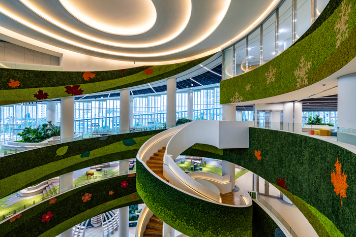 ‘친환경 도서관’을 표방하는 경기도서관은 냉난방에 지열과 태양광 에너지를 이용하고 공기정화, 습도조절, 소음저감을 위해 스칸디아모스(천연이끼)가 나선형 계단을 따라 설치되어 있을 뿐 아니라 내부 녹지공간도 풍부하다.