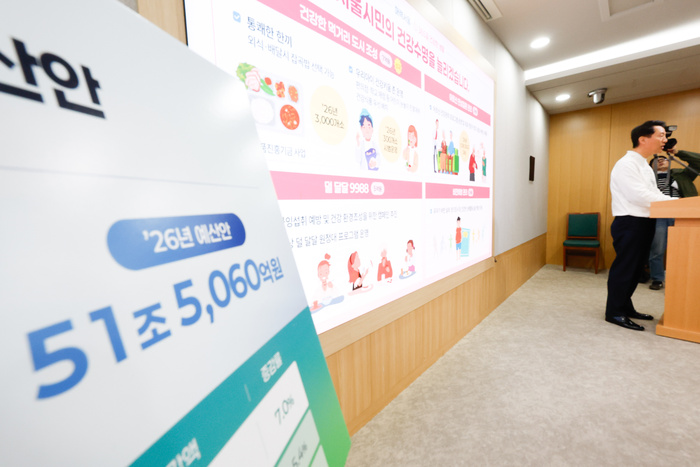 오세훈 서울시장이 30일 오전 서울시청 브리핑룸에서 2026년 서울특별시 예산안을 브리핑 하고 있다. 서울시는 지난해보다 3조 3,915억원(7%) 오른 총 51조 5,060억 원 예산안을 편성해 31일 서울시의회에 제출한다고 밝혔다.