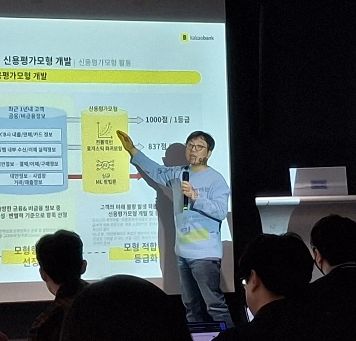 | 조진현 카카오뱅크 신용리스크모델링팀장이 지난 29일 서울 카카오뱅크 여의도 오피스에서 열린 ‘카뱅커넥트’ 행사에서 카카오뱅크스코어에 대해 설명하고 있다./사진=김봉정 기자. |