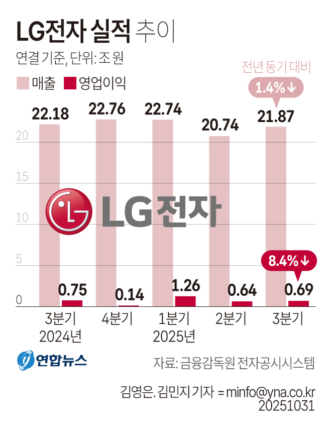 [대한경제=심화영 기자] 미국발 관세와 전기차 시장 둔화, 이른바 ‘EV 캐즘(EV Chasm)’이라는 복합 악재 속에서도 LG전자가 올해 3분기 비교적 선방했다.