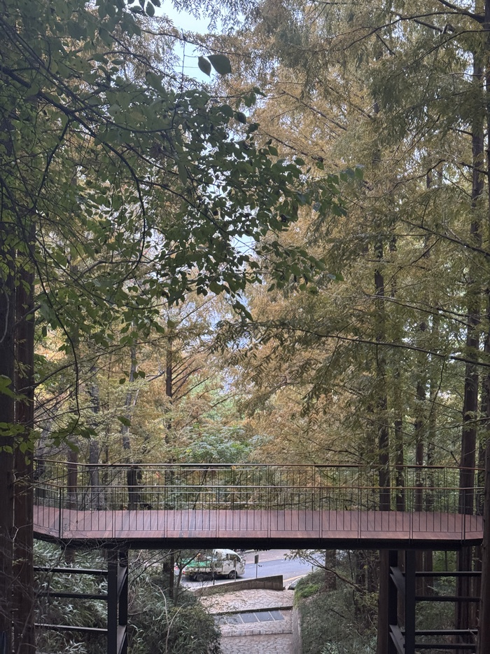남산 하늘숲길은 남산도서관 옆 새로 조성된 작은 공원 소월정원에서 출발한다. 그간 남산은 깊어가는 가을을 느낄 수 있는 서울 도심 속 단풍 명소로 알려져왔지만, 누구나 오르기 쉬웠던 건 아니다. 하지만 남산 하늘숲길은 용산구 후암동 체력단련장까지 나무데크로 조성된 1.45㎞ 무장애 산책로다. 고령자뿐 아니라 유아차나 휠체어를 끌고도 남산을 오를 수 있도록 안정적이고 완만한 경사로 설계됐다.