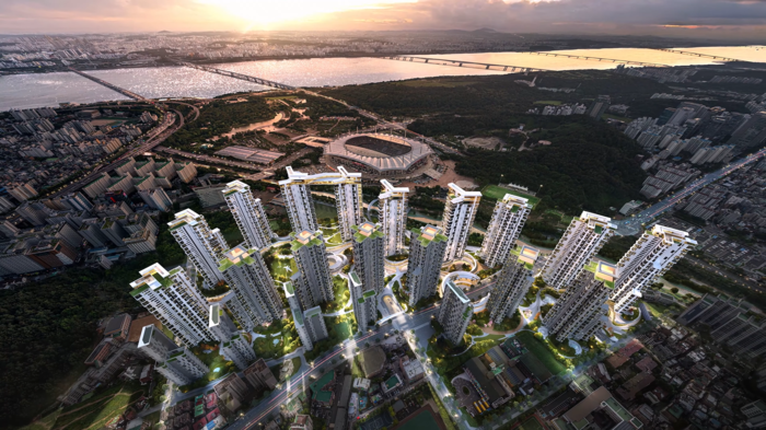 특화 설계로는 △4km 길이의 테마 산책로 △3만평 규모의 중앙정원 △6가지 테마의 커뮤니티센터 △랜드마크 스카이브릿지 등을 내세웠다.