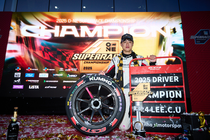 | 금호 SL모터스포츠팀 이창욱 선수가 ‘2025 오네(O-NE) 슈퍼레이스 챔피언십’ 토요타 가주 레이싱 6000 클래스 드라이버 챔피언을 차지했다./사진: 금호타이어 제공 |