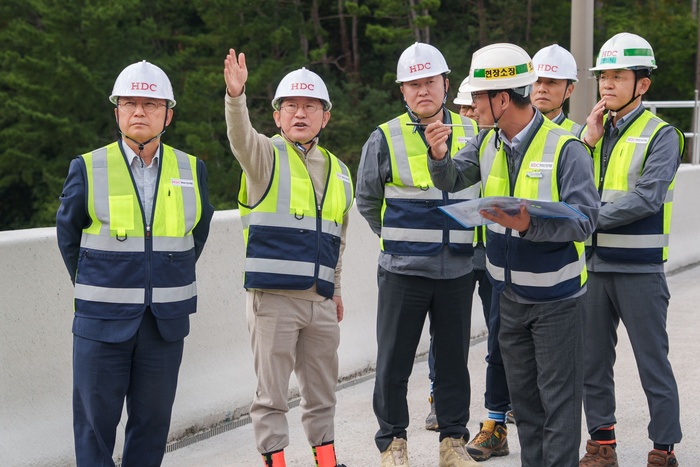 4일 HDC현산에 따르면 정 대표는 지난달 31일 최고안전책임자(CSO) 조태제 대표 등 임직원과 함께 포항-영덕고속도로 4ㆍ5공구 건설 현장을 방문했다.