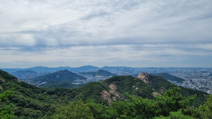 조금 더 올라 고개를 하나 넘어서니 서울이라는 도시의 모습이 한눈에 들어오기 시작한다. 그리고 서울이 품고 있는 산들도 모두 모습을 드러낸다. 북한산의 족두리봉부터 인왕, 백련, 안산 등 서부 3산과 남산 그리고 멀리 관악산까지….