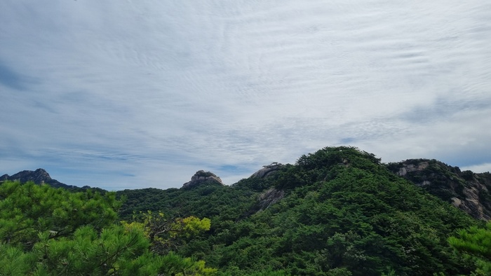 이 코스를 걷게 되면 북한산의 주요 봉우리들이 하나둘씩 나타나고 조망하는 지점의 높이와 각도에 조금씩 다른 모습으로 따라다니는 걸 보게 된다. 이 코스가 주는 즐거움 중 하나다.