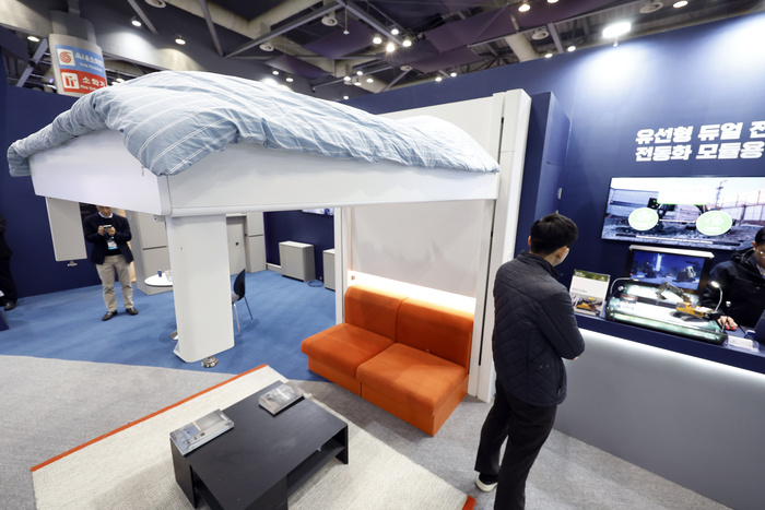 | 버튼 하나로 침대가 위아래로 이동하여 공간을 확장 할 수 있는 로보틱스 침대 |