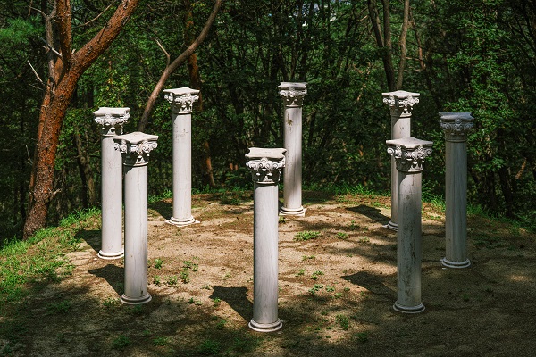 부지에는 약 8km의 산책로와 4만 평 규모의 적송 군락이 조성돼 있다. 이 숲은 단순한 조경이 아니라, 더마구 철학의 출발점이자 상징이다. 수십 년간 자라온 적송 군락은 도시화와 기후 변화 속에서도 보존된 드문 숲으로, 자연과 인간의 시간이 공존하는 배경이 된다. 산책로를 따라 ▲아르코 캄파나 ▲더 테라스 ▲에코스 ▲비스타 ▲포레스트 브리지 ▲까사 드 티 등 여섯 점의 인스톨레이션이 배치돼 있으며, 대리석과 고벽돌을 사용한 조형물들이 숲의 흐름에 따라 건축과 예술의 경계를 잇는다.
