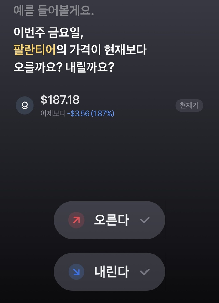 [대한경제=김관주 기자] “이번 주 금요일, 팔란티어의 가격이 현재보다 오를까요? 내릴까요?”