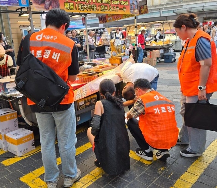 | 공무원들이 명동 노점 특별정비를 하고 있는 모습. / 사진 : 중구 제공 |
