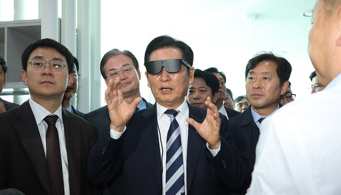 | 정청래 더불어민주당 대표가 7일 충북 청주시 오송첨단의료산업진흥재단을 방문, 실험 및 연구 장비 등을 살펴보고 있다./사진:연합뉴스 |