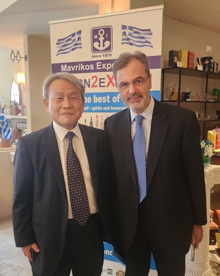 | 2025년 10월 30일 서울에서 열린 “Greek Day in Seoul” 행사에서 최정대 대표와 주한 그리스 대사관의 콘스탄티노스 다스칼로풀로스(Konstantinos Daskalopoulos) 경제외교참사관가 한-그리스 문화교류에 대해 환담한 뒤 기념 촬영을 했다. /사진: 최정대 대표 제공 |