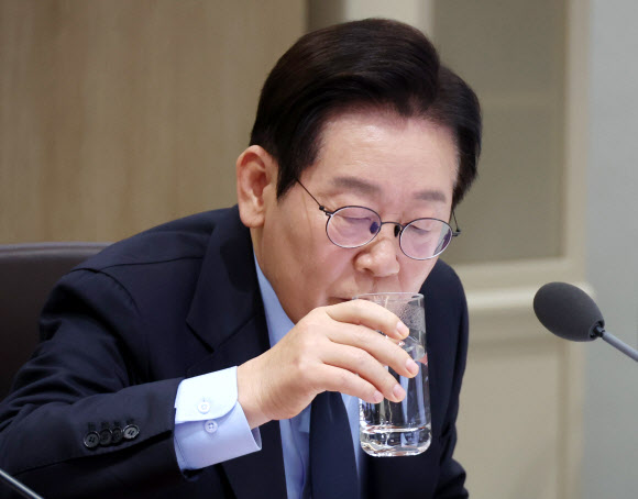 | 이재명 대통령이 11일 용산 대통령실에서 열린 국무회의에서 물을 마시고 있다./사진:연합뉴스 |