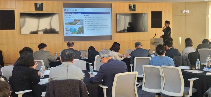 | 이찬영 한국도로공사 도로교통연구원 박사가 12일 서울 강남구 POSCO센터에서 개최된 '강재 도로안전시설 내구성 향상을 위한 정책토론회'에서 발표하고 있다. /사진= 백경민 기자 |