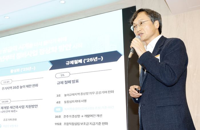 시는 그간의 규제 철폐와 신통기획 2.0 등 정책으로 2031년까지 약 31만가구를 착공하고, 2035년 내 37만7000가구를 준공하겠다는 목표다. 김 과장은 “정비사업은 민간과 공공이 함께 만들어가는 일”이라며 “조합이 의견을 모으고 신속히 의사결정을 내려줄 때 구역 지정부터 준공까지 12년이라는 목표를 달성할 수 있고, 그러면 시는 적극적으로 지원해 실현하겠다”고 말했다.